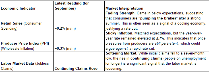 The Fed's decision, however, will be based on hard data—and last week's delayed economic reports were a mixed bag, adding complexity to the rate cut bet