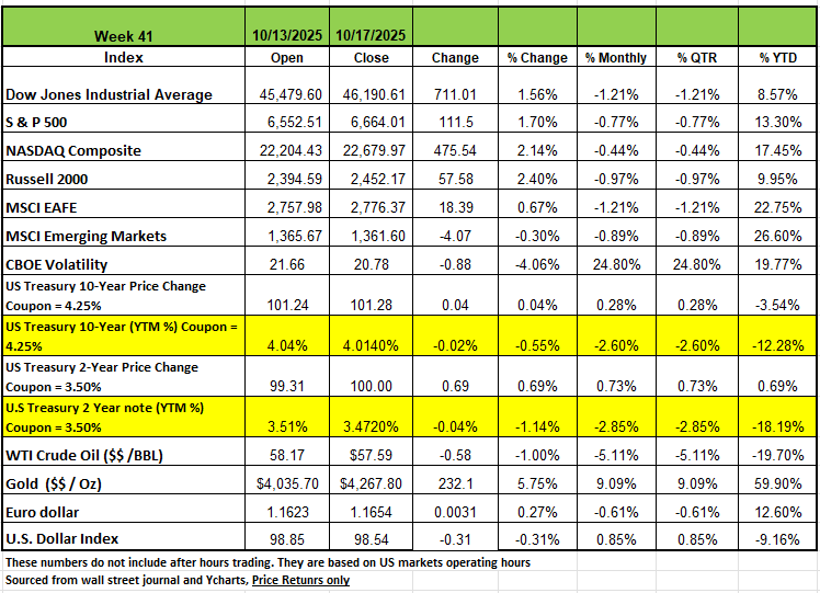 Weekly Economic and Market update week of Oct 20 2025